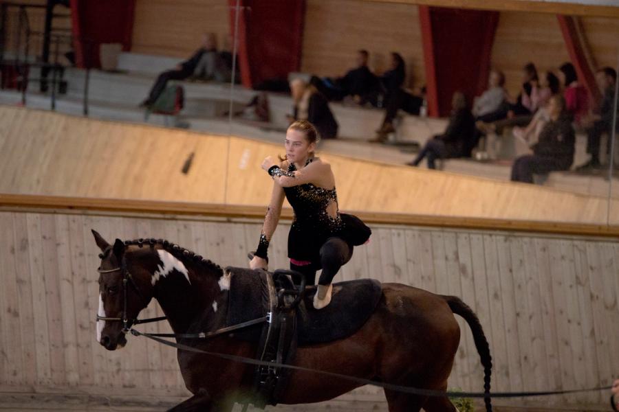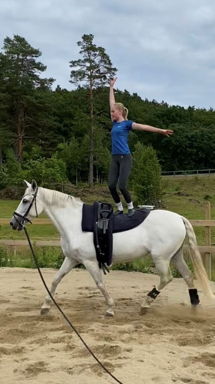 Emilie har med seg Emma Helene Kaps som også skal undervise under voltigehelgen. Emma er dyktig innen det artistiske innen voltige og startet på samme lag med Emilie i EM i voltige i 2018.