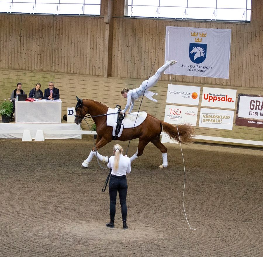 Mathilde danner partnerskap med hesten Gucci Gicarda – som også mesterskapsdebuterer. Marie Hatlevoll sjonglerer to oppgaver der i Uppsala, i tillegg til å være mamma til Mathilde og også hennes søster Anniken stiller hun nemlig som longør. Det gjør hun med bravur sammen med Gucci, som har prestert jevnt og godt med flere norske voltigører på ryggen.