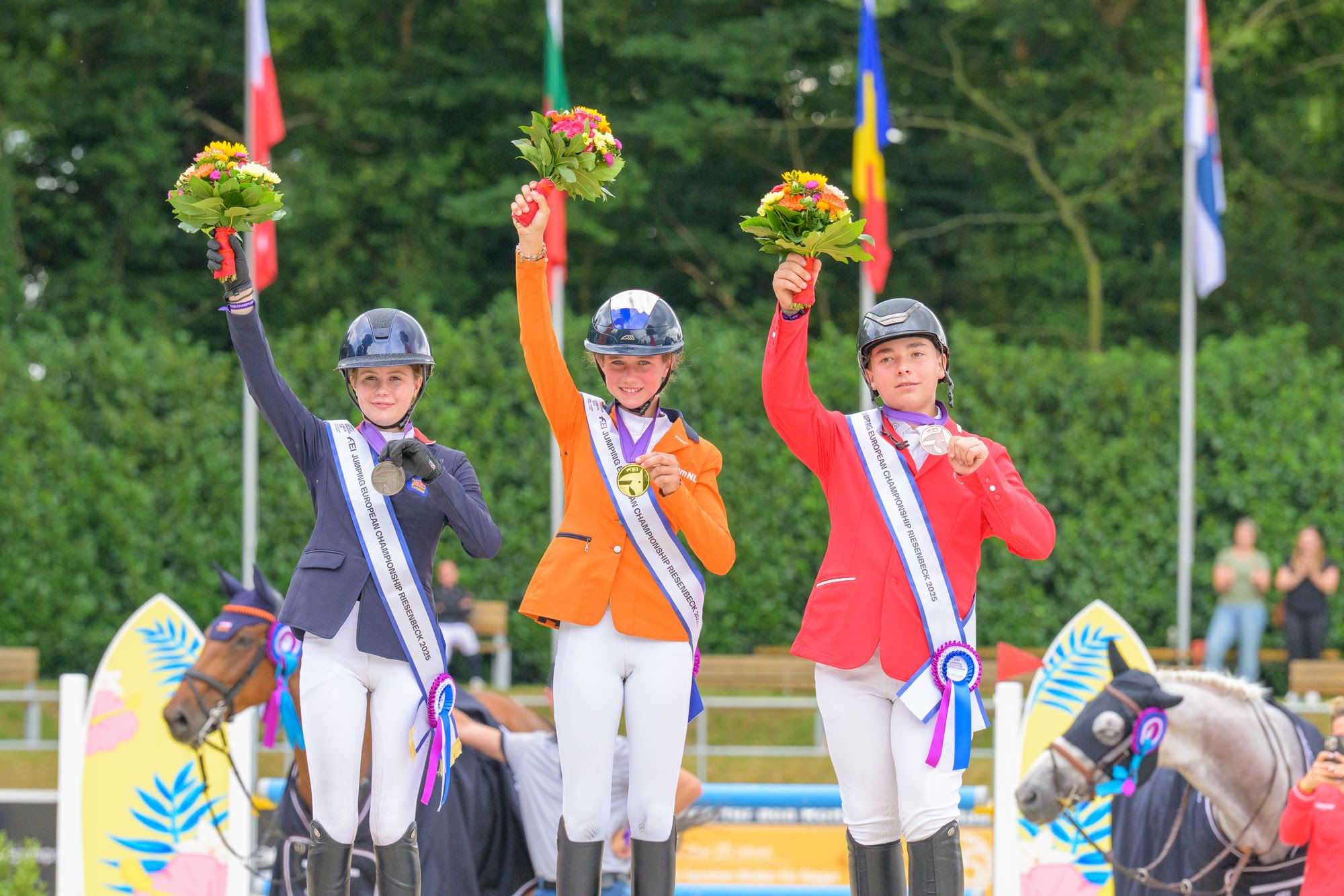 Til sist skulle det vise seg å gå veien for nederlandske Liselot Kooremans med den 12 år gamle I’m Special de Muze-datteren Nini van HD. Stortalentet som fra før kan skilte med individuelt EM-sølv for ponni 2024, satte nemlig standarden fra start og fløy formelig inn til individuelt gull – vel fortjent som eneste feilfrie gjennom hele mesterskapet. Storbritannias EM-debutant Eleonora Ljungman sikret individuelt sølv med Jamaica Ebh, mens sveitsiske Noah Philips-De Vuyst med Fouego de la Closierere endte på bronseplass.