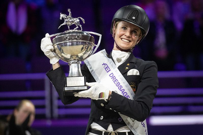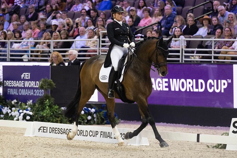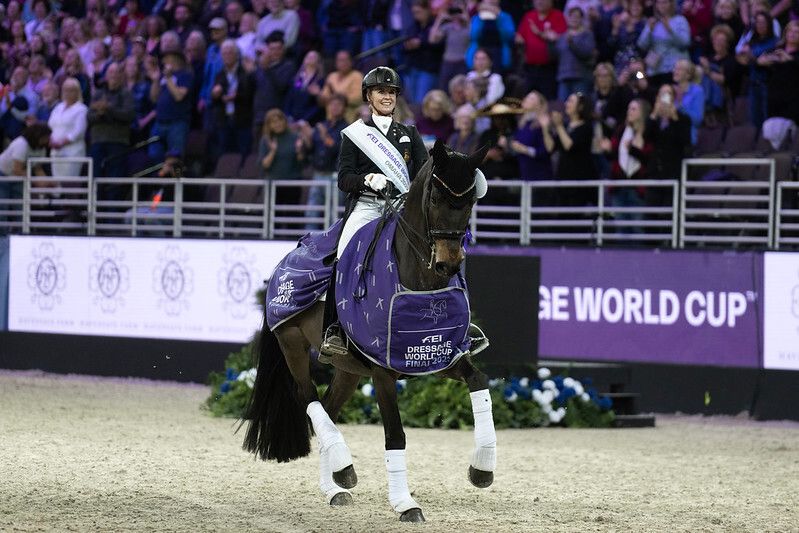 13 ekvipasjer entret ringen under FEI Dressage World Cup™ Final – Grand Prix Freeestyle presented by Havensafe Farm denne fredagen - natt til lørdag norsk tid - da sprangrytterne og voltigørene hadde hviledag. Og nær sagt som forventet, gikk det veien for tyske Jessica von Bredow-Werndl, også under verdenscupfinalen dette året. Tobarnsmoren, som grunnet barnefødsel ikke kom til start under VM i Herning 2022, stilte som tittelforsvarer fra Leipzig 2022, og gjorde som hun hadde satt seg fore. Etter en noe overraskende oppvarming i Grand Prix på åpningsdagen med et par feil underveis grunnet en heltent, nærmest overtent TSF Dalera BB (Easy Game x Handryk), satt nå nemlig alt som det skulle da det virkelig gjaldt som mest.