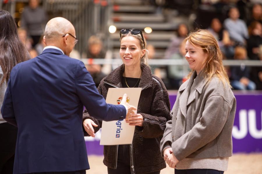 Steinar Ranheim, acting country manager Norway i Agria, stod for utdelingen sammen med Eline Simensen Hafskjold, key account manager samarbeidsavtaler i Agria, og Kjell Myhre, seniorrådgiver i Norges Rytterforbund.