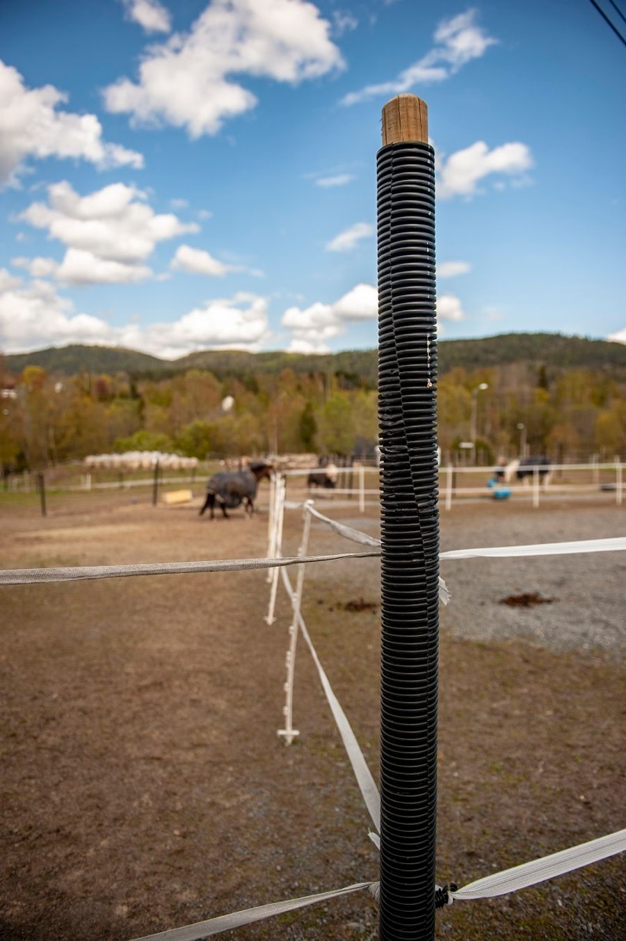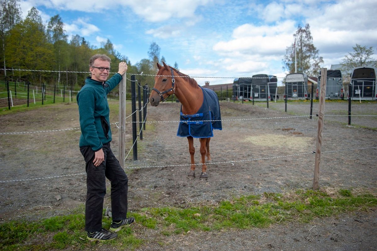 – Selv om de øverste trådene ruver ca.180 cm over bakken, blir strømtrådene i laveste laget for de største hestene hos oss. Vi har derfor måttet sette opp en fjerde strømtråd, for å være på den sikre siden, forklarer Mathisen.