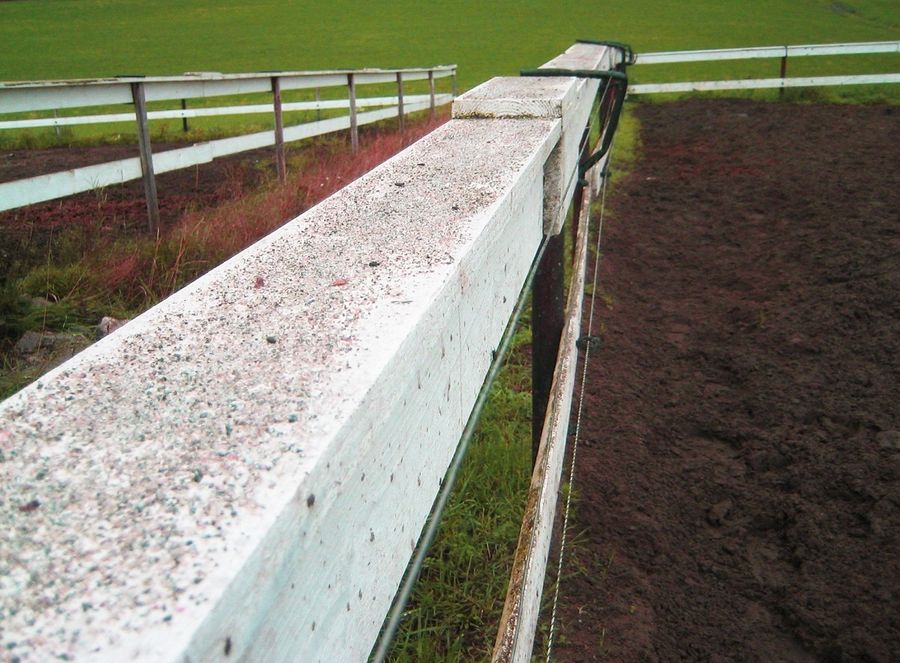 Tregjerder er også utsatt for gnaging. For å unngå dette kan du montere strømtråd, slik at det blir vanskelig for hesten å komme til gjerdet. Et annet alternativ er å male gjerdet med sand i malingen, eller kle plankebordet med et metallbånd.