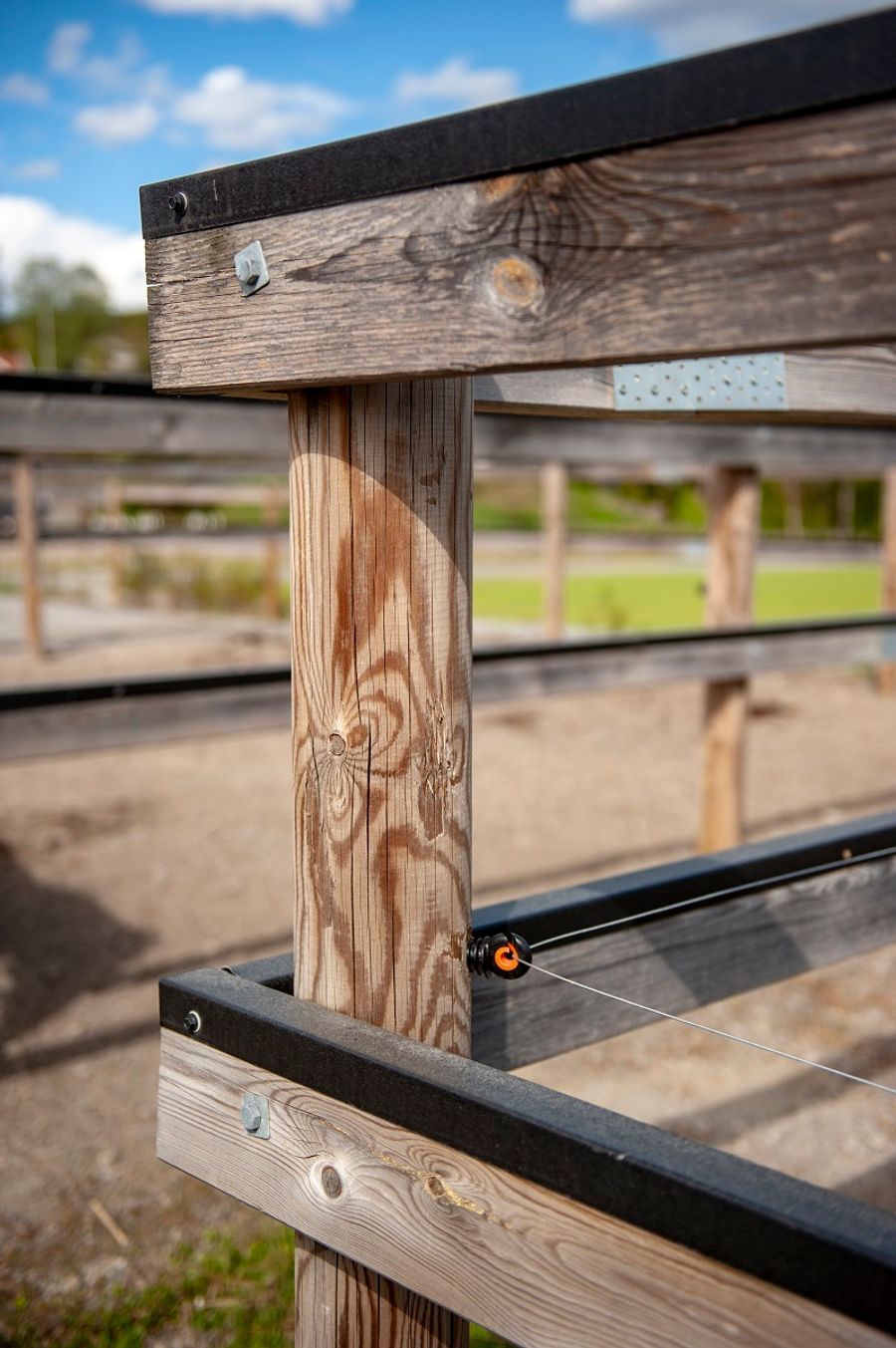 Men i stedet for langsgående plankebord, kan man bruke kun strømtråd. Denne fåes i forskjellige kvaliteter, både bånd, tråd, tau, ståltråd, aluminiumstråd og plastbånd. Sistnevnte «Horserail» fåes i forskjellige farger og i bredder fra 10-15 cm.
