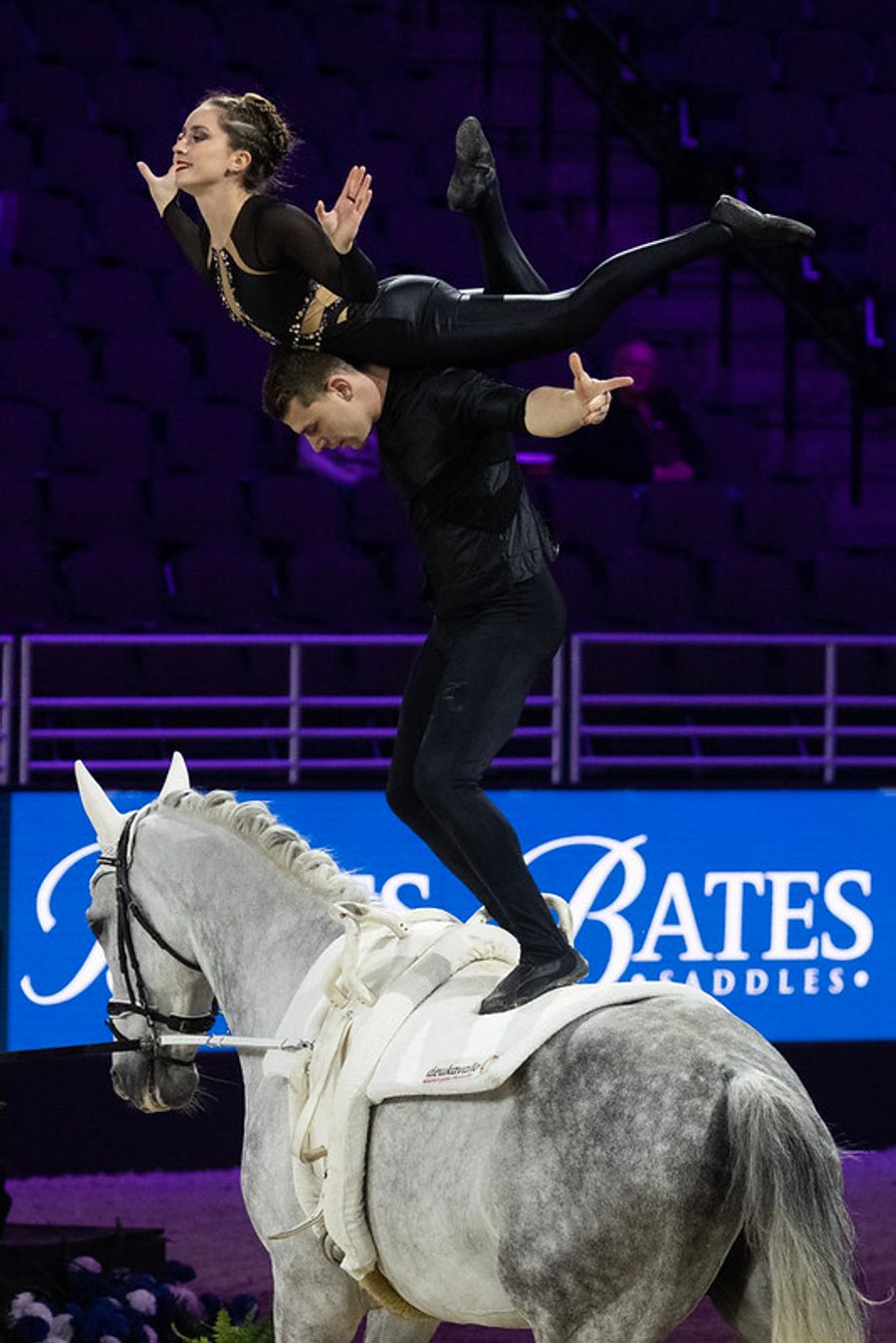 Etter at to av årets tre World Cup-titler tilfalt tyske utøvere, gjensto bare ett spørsmål i Omaha lørdag kveld i forkant av årets sprangfinale. Ville også Pas de Deux-trofeet havne i tyske hender? Allerede første dag var de regjerende verdensmestrene, Chiara Conga og Justin van Gerven, nå med longør Sarah Krauss og Max på lag, på betryggende vei mot finaleseier, men sammenlagtseieren kom ikke av seg selv. For de to tyske makkerne Diana Harwardt og Peter Künne med longør Hendrik Falk og hesten Sir Laulau dem virkelig konkurranse gjennom seier i årets andre freestyle til 8.516.