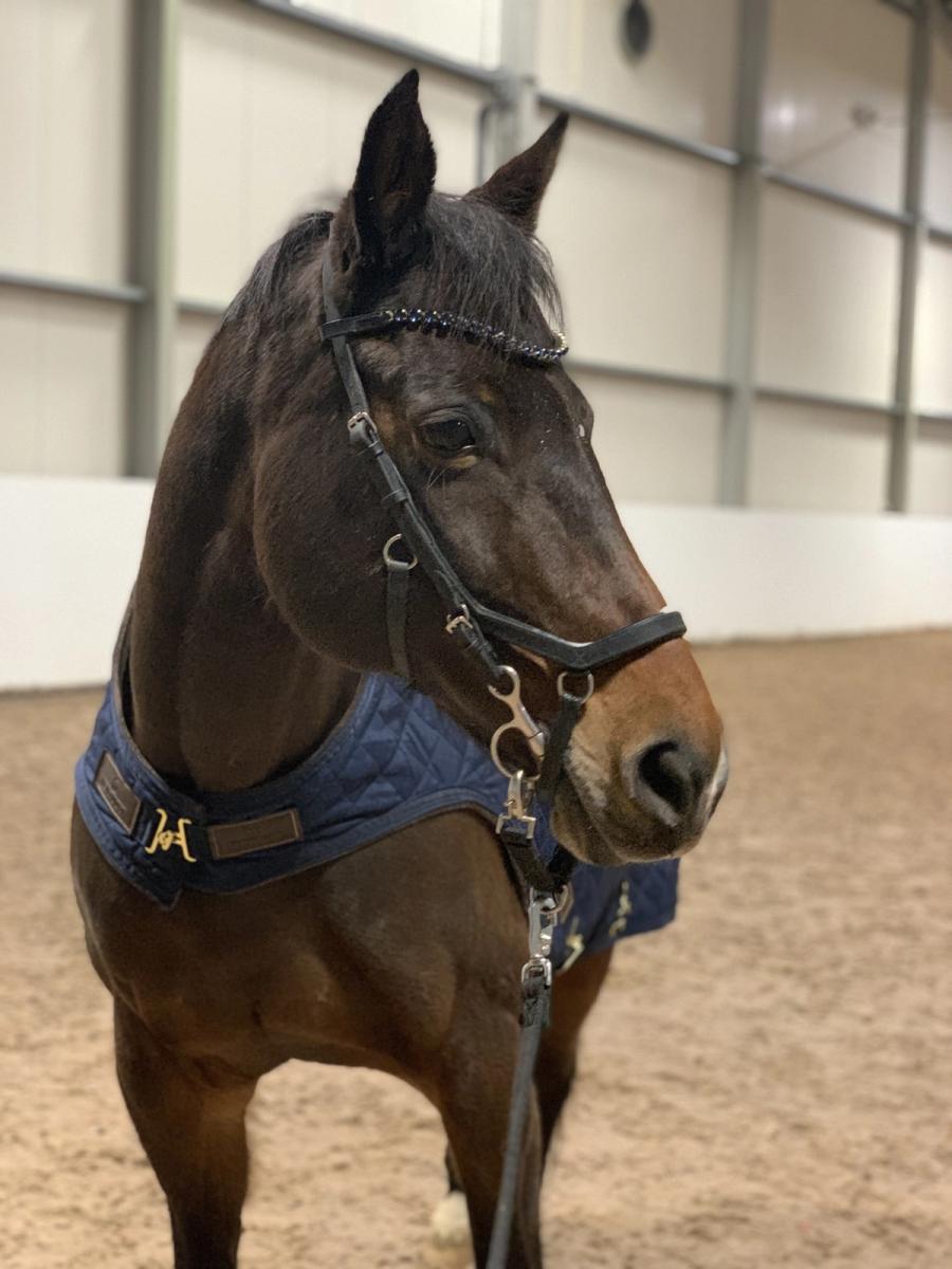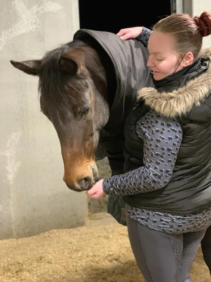 For et par uker siden var hun ute og leide hesten sin, Damsgaards Akina, en dansk varmblods dressurhoppe født 2005, ved stallen på Haugaland Hestesport Arena.