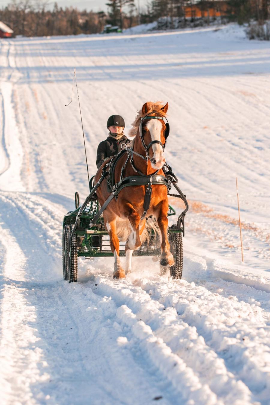 Å sitte i en vogn bak en hest er om mulig en enda kaldere treningsvariant enn å sitte oppå en hest de dagene termometeret glitrer blått.