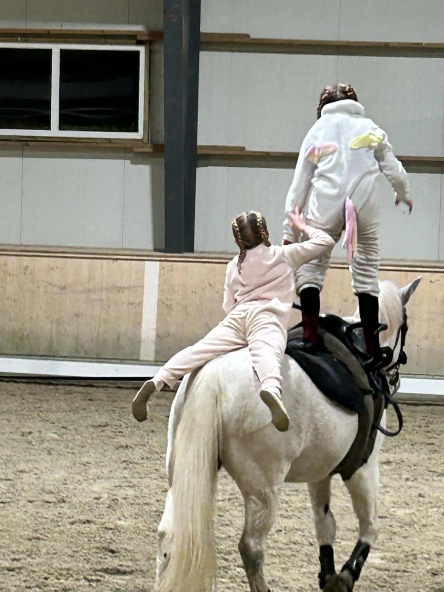 Voltigegjengen fra Team Hegre gav oss en herlig oppvisning med musikk fra My Little Pony, og publikum var tydelig imponert over de unge utøverne i alder 5-10 år sin innsats, innlevelse, og ikke minst hvor komfortable både utøvere og hesten var gjennom hele oppvisningen.