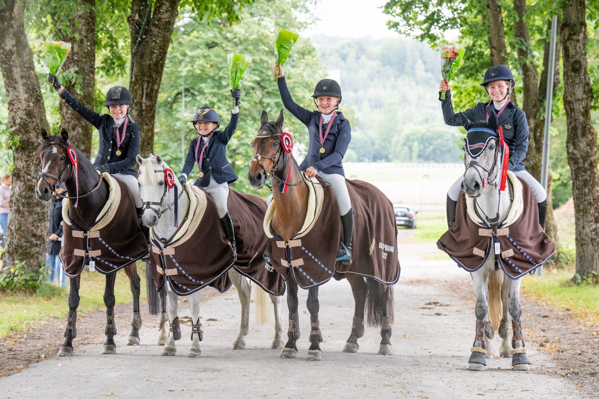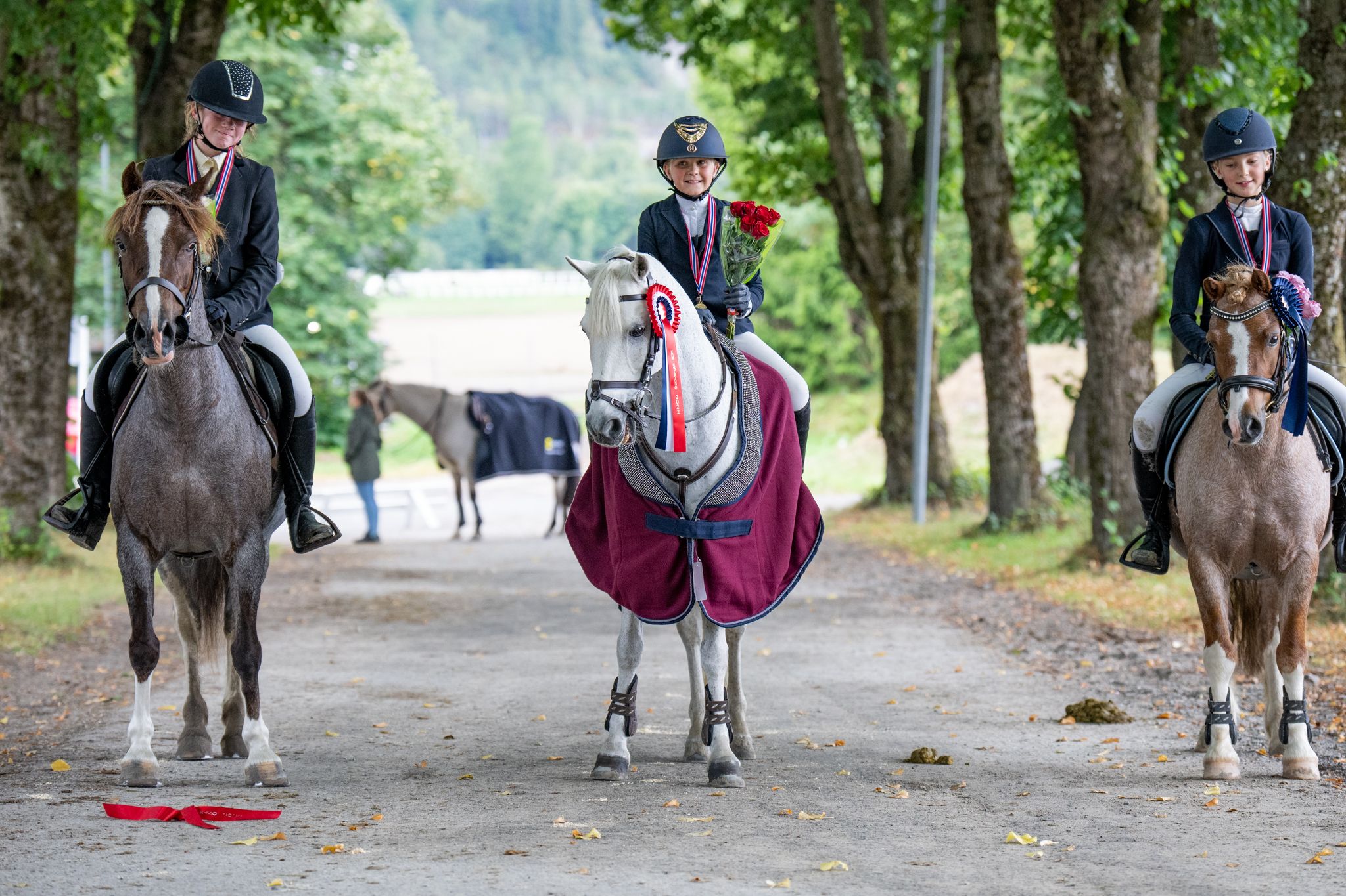 Og at ponnisporten blomstrer i blant annet Jarlsberg og Melsom Rideklubb er åpenbart, for mange av sprangmedaljene for sportens minste firbente og yngste tobente KM-deltakere havnet nettopp her - så som blant annet i årets lagmesterskap for ponni på lørdag. Her reulterte laginnsatsen med gull ved Jenny Næss Birkeland/ Jacksun King, Julie Marie Zimmerlund/ Connie Girl, Stella Lundberg/ Woodfield Spartacus og Thea Førsund/ Lodestar Van’t Recthof, og klubben sikret også lagbronse. Tre individuelle gull i ponnimesterskapene ble det også for melsomryttere på søndag, da Jenny Næss Birkeland/Jacksun King ble KM-mester for ponni kat. 3, Julie Marie Zimmerlund/Connie Girl sikret KM-gull for ponni kat. 2 og Hedvig Wiig Ødegård/ Corazón De Nino klinket til med KM-gull for ponni kat. 1.