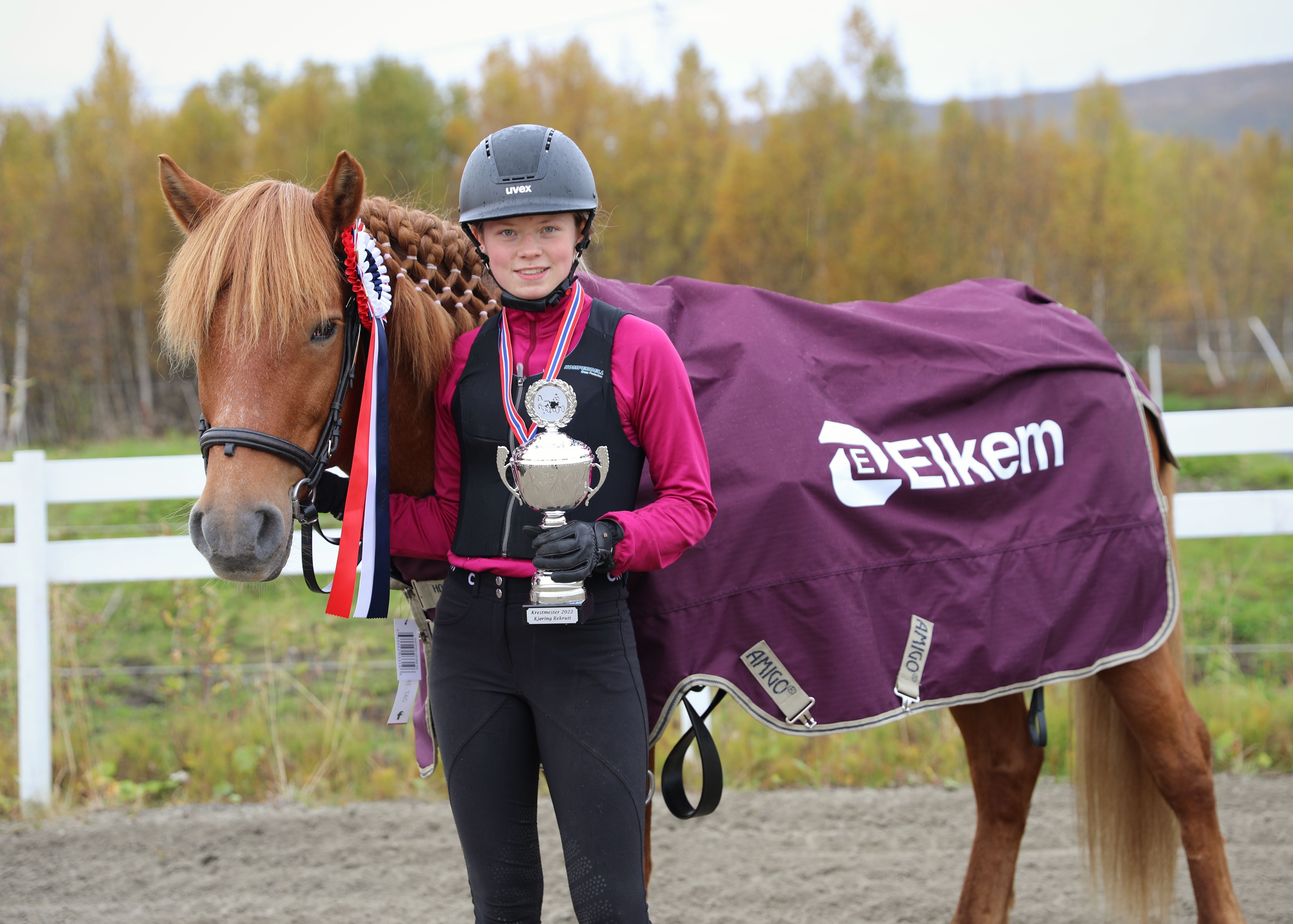 Selv holdt Rebecca Krog Strøm tak i dugnadstråden sammen med klubbvenninne Kristel Hansen under KM-helgen, og de to kunne ikke bare glede seg over et vellykket arrangement, men også over gjeve kretsmesterskapsmedaljer. For førstnevnte, som både er utøver og trener, hesteeier og oppdretter av ikke mindre enn 40 nordlandshester, strøk nemlig av gårde med KM-gull blant seniorene med sin førstepremierte nordlandshingst Bjørkefrost, mens sistnevnte kapret årets seniorbronse med fjordingen Heros. Katarina Evardsen Brorsgård fra Bodø Kjøre- og Rideklubb kjørte på sin side allroundtraveren sin, Kjærs Emil, inn til populært seniorsølv.