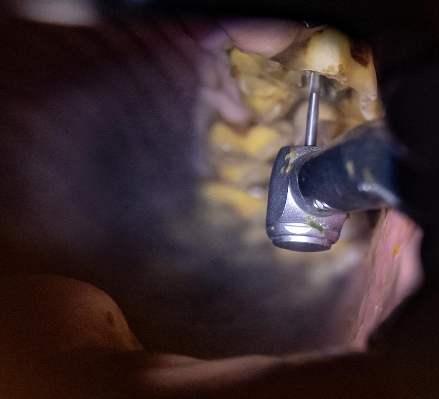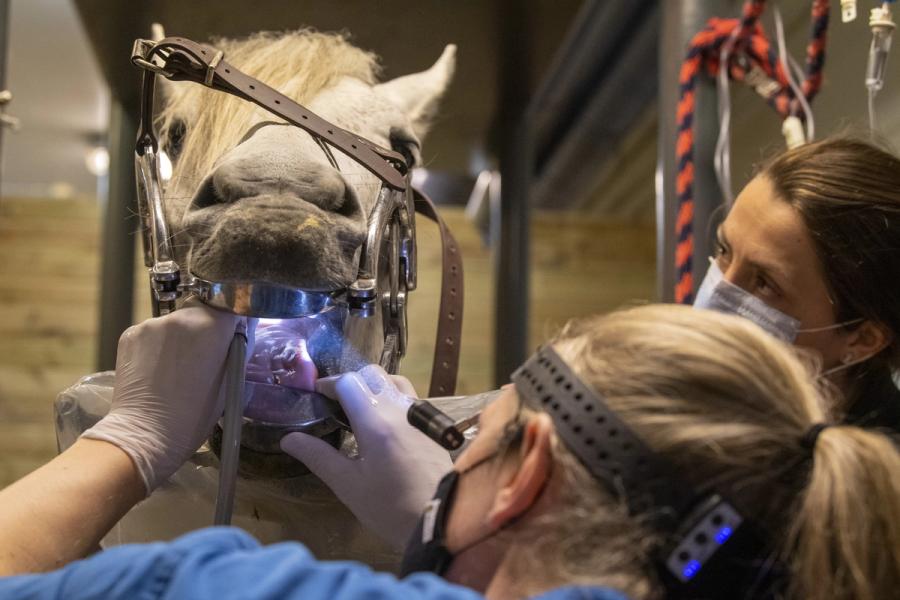 – Aldersrelatert infundibulær karies, det vil si hull i tennene som skyldes mangel på et stoff som heter tannsement, oppstår når hos noen hester når de kommer i tenårene, fordi det hos en del hester ikke dannes sement her. Det er ting vi ser relativt ofte. Vi kan gå inn og fylle disse hullene før tennene noen år senere potensielt vil knekke og da må trekkes. Ellers er sementkaries, eller karies generelt, noe vi ser en økende grad av. I noen deler av verden er det relatert til visse typer fôr, mens andre steder, som i Europa, er det litt mer sammensatt - både faktorer hos hesten, bakterieflora og immunsystem, som spiller en rolle i tillegg til fôring, forklarer Johanna.