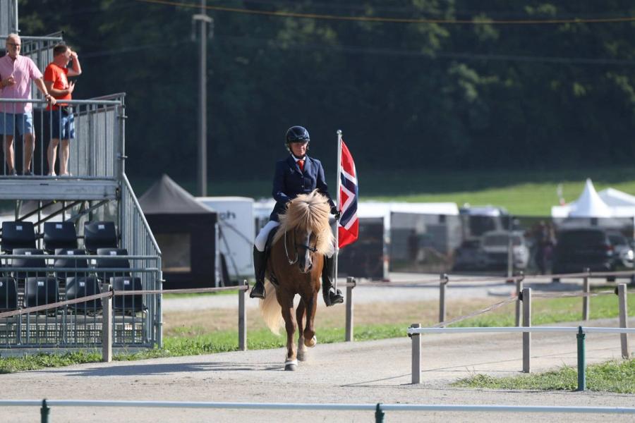 Anne Stine Haugen og drømmehesten Hæmir fra Hyldsbæk tok gull i V1 senior under VM for islandshest, med poengsummen 7,97. Det ble en jevn finale mot landslagskollega Christina Lund og Lukku-Blesi frá Selfossi, som endte på 7,90.