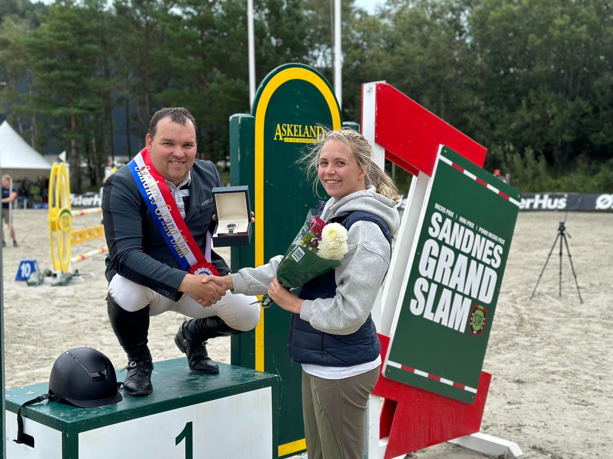 I vår la klubben ned et stort stykke arbeid i oppgradering og facelift på anlegget sitt, med kontinental sydenfølelse og enda bedre forhold for hester og ryttere som resultat. I mai gikk det første stevnet i Sandnes Grand Slam, så var det ny runde i juli. I helgen gikk det tredje og siste Sandnes Grand Slam – og det ble klart hvem som ble sammenlagtvinnerne av henholdsvis Norsea Mini Prix (130-140 cm) og Østerhus Micro Prix (120-125 cm) – og dermed hvem som kunne smile bredt over en Longines-klokke til en verdi av 15 000 kroner, sponset av klubbens gode sponsor Askeland Ur og Diamanter.