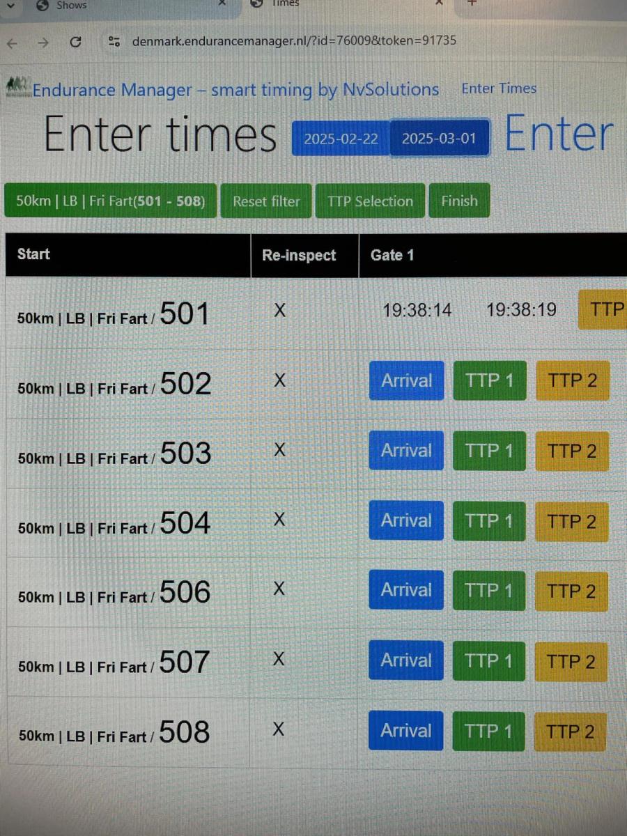 I planleggingen av GEF (Gyland Endurance festival) 2025 har jeg sammen med vår klubb stått på for å få dette opp og gå til vårt internasjonale stevne 12. april. Vi har kjøpt inn nødvendig «hardware» (noen android nettbrett med mobilnett) og NRYF har bestilt systemet til Norge slik at lisensutgiftene dekkes sentralt for alle ritt hele sesongen i Norge. Senere forstår jeg at det vil bli belastet klubbene en mindre avgift pr stevne fra NRYF. (NRYF dekker alle utgifter til programvaren i 2025, klubbene må eie/leie hardware selv. Red. anm.). På vårt landsstevne 22. februar fikk vi testet systemet med våre egne nettbrett.
