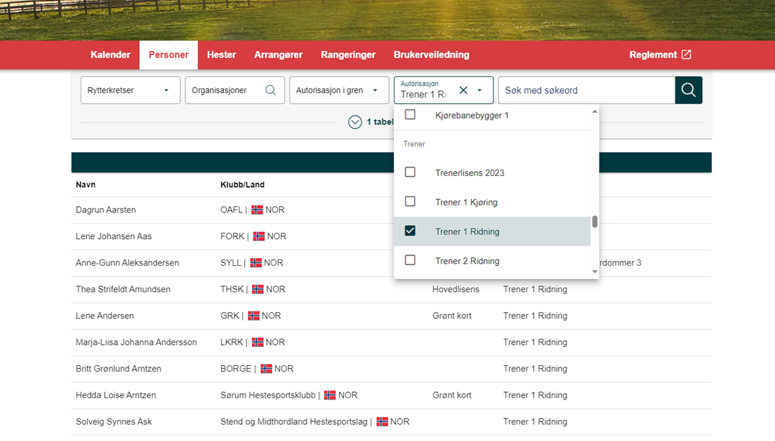 Nå kan du søke etter NRYF-autoriserte trenere i vårt trenerkart her på Norges Rytterforbund | NRYF autoriserte trenere eller i personsøk på NRYFstevne.