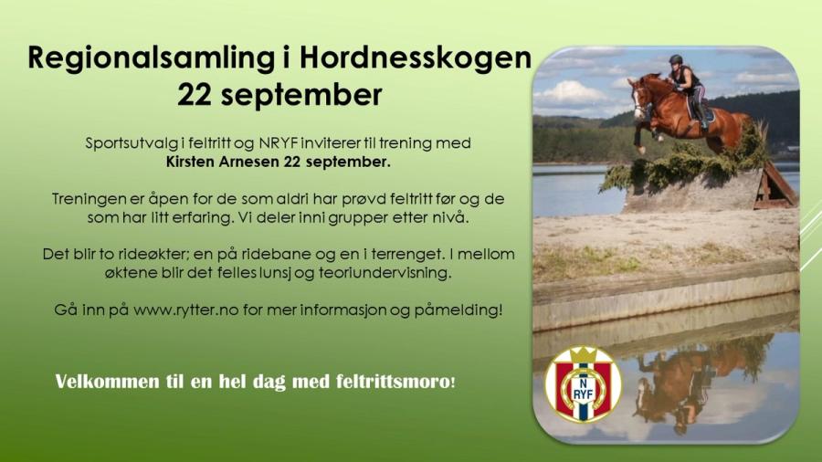 Endelig kan vi presentere regionalsamling i Bergen! Banen i Hordnesskogen har gjennomgått betydelig oppgradering i år, og vi gleder oss over å kunne tilby samling med Kirsten Arnesen på dette fine stedet.