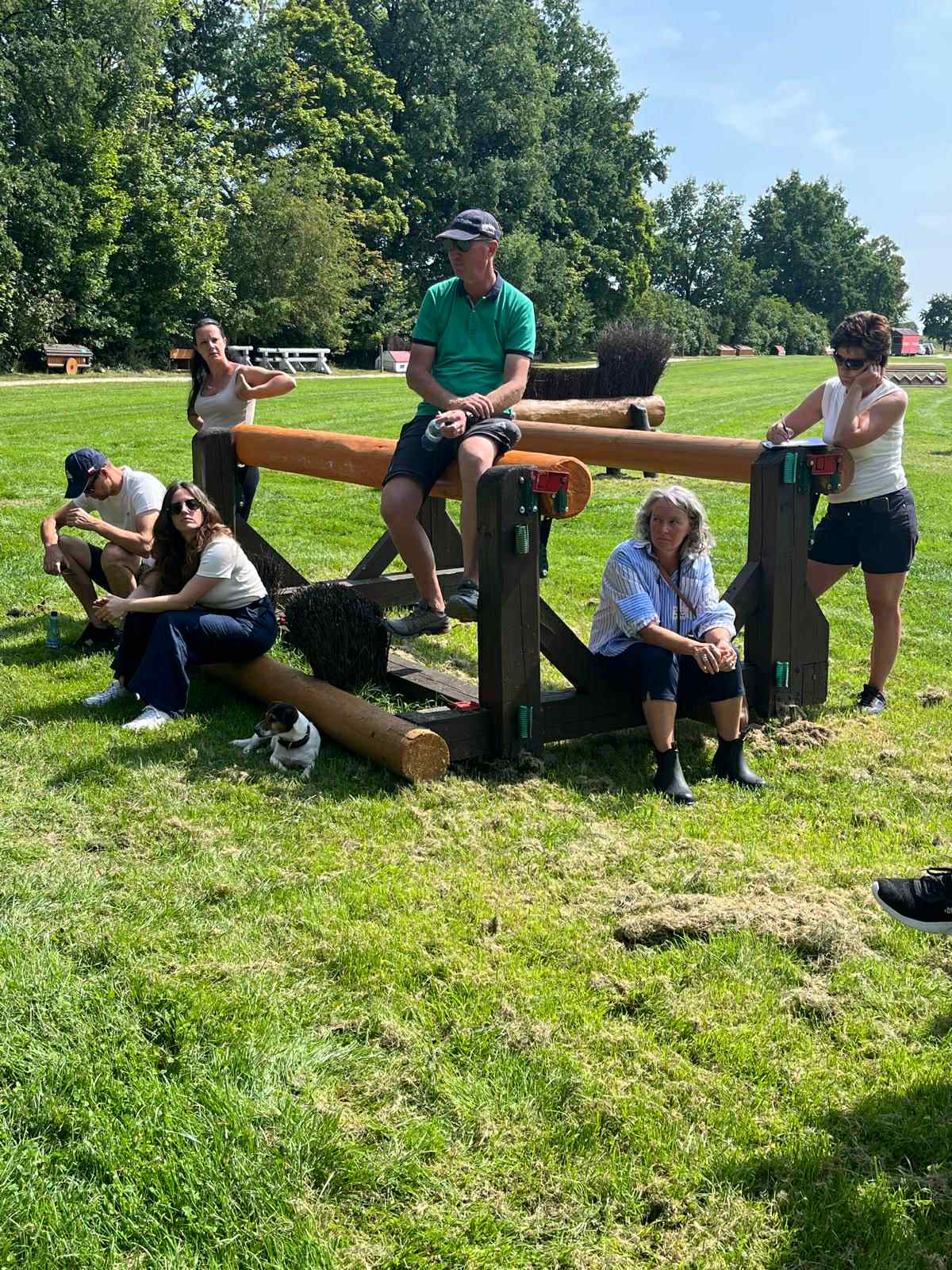 Fredag fortsatte vi med flere praktiske øvelser. Vi fikk tildelt ulike hinder og oppgaver – blant annet å plassere dem riktig i terrenget, vurdere avstander og se på underlag ved avsprang og landing. Vi fikk trene på oppmåling, vurdere høyder, se på hvordan vannhinder bør bygges opp, og diskutere hvilke løsninger som passer best for ulike klasser.